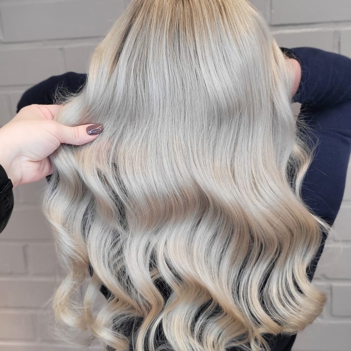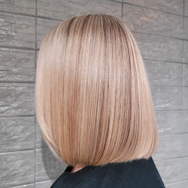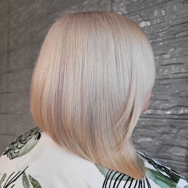 Vaalennuskäsittely sisältää hiuksen kokovaalennuksen, tyvivaalennuksen tai raidoituksen, olaplex-hoidon sekä sävytyksen.
